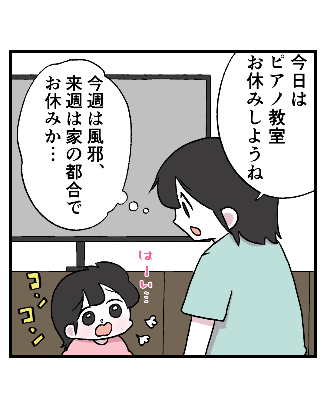 振替できないのはわかっていてピアノ教室に通い始めたのに、月3回のうち2回お休みとなると悲しいものがあった😭