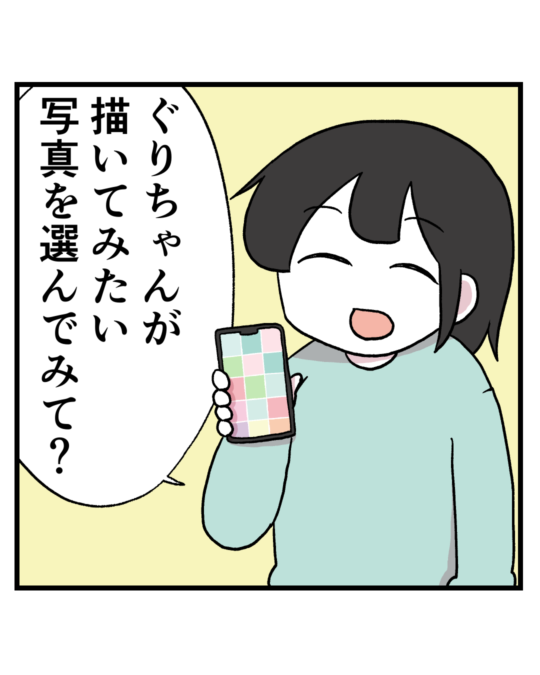お絵描き教室に行く前にぐりちゃんが描きたい写真を選んでもらって、コンビニでプリントしています。